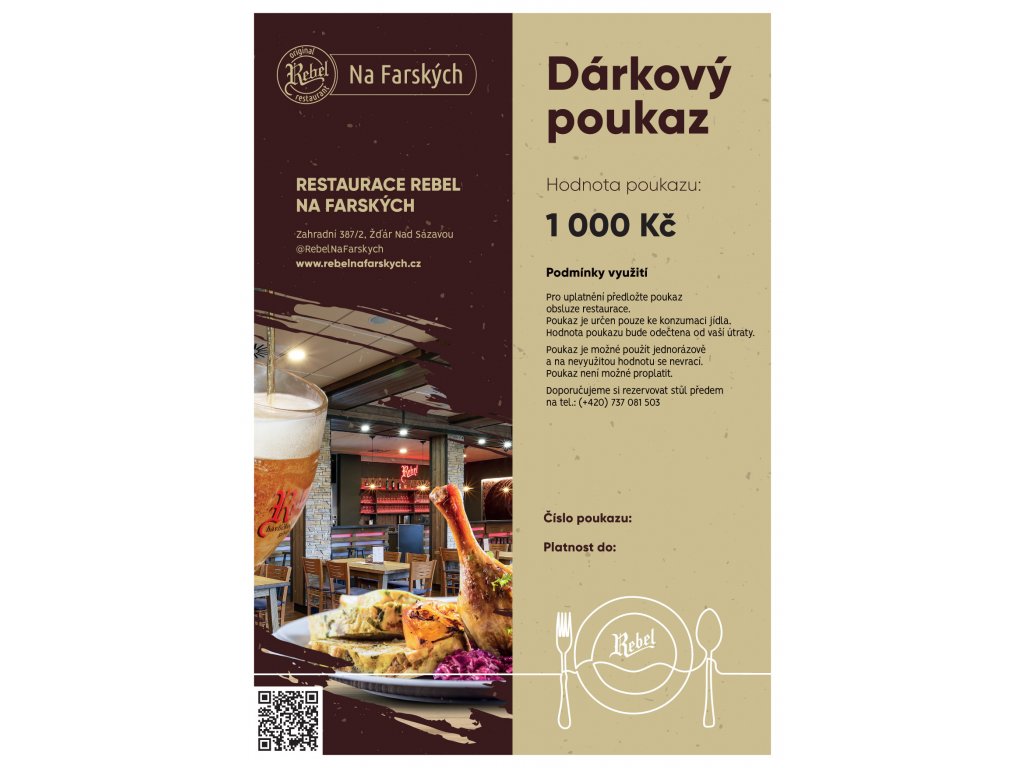 Poukaz v hodnotě 1000 Kč - Rebel Na Farských, Žďár nad Sázavou